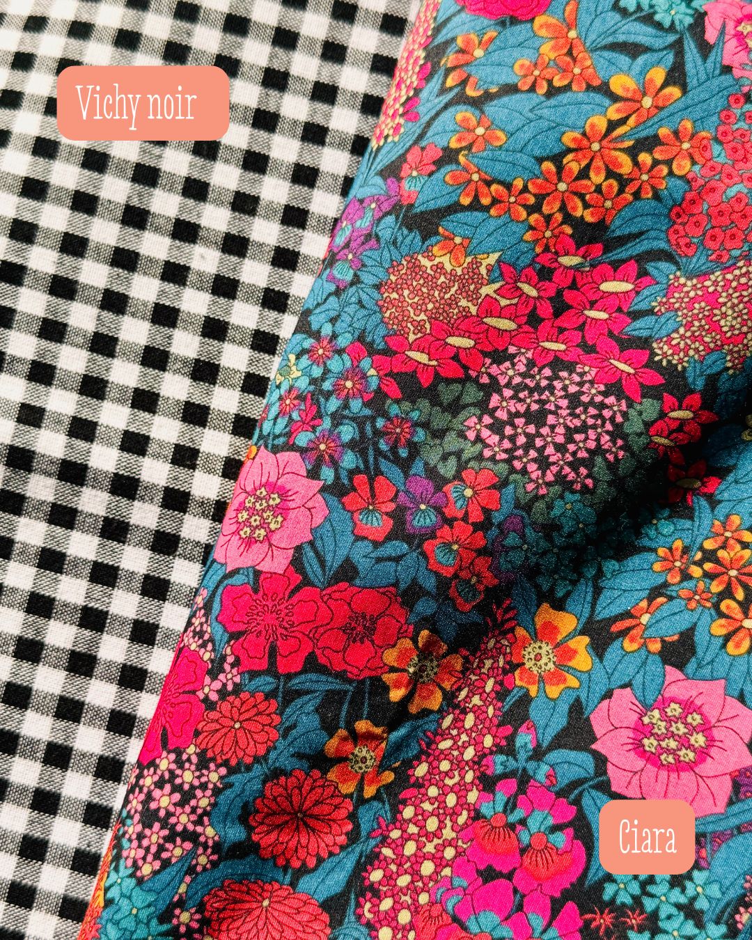 Version simple avec les deux tissus visibles pour un effet double matière